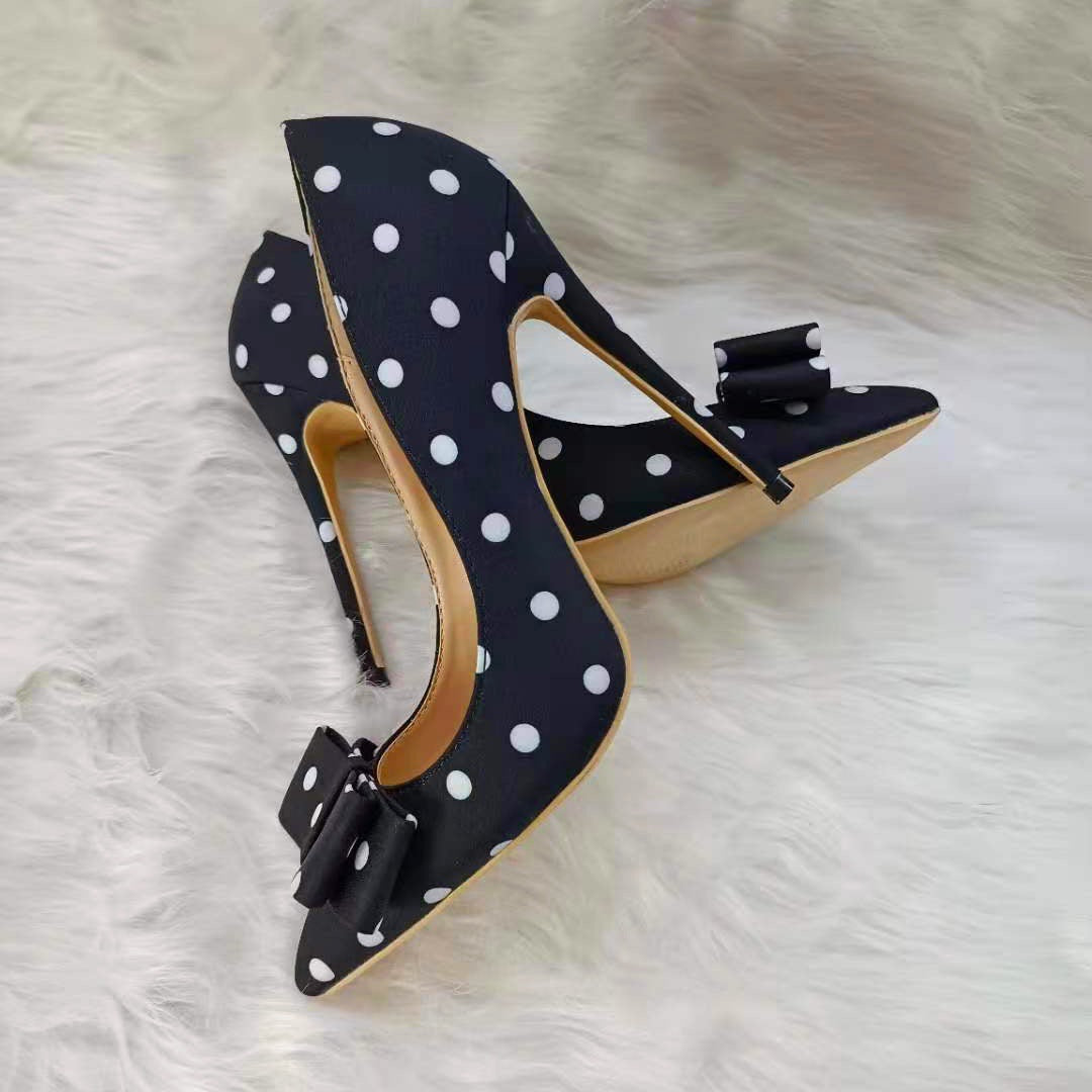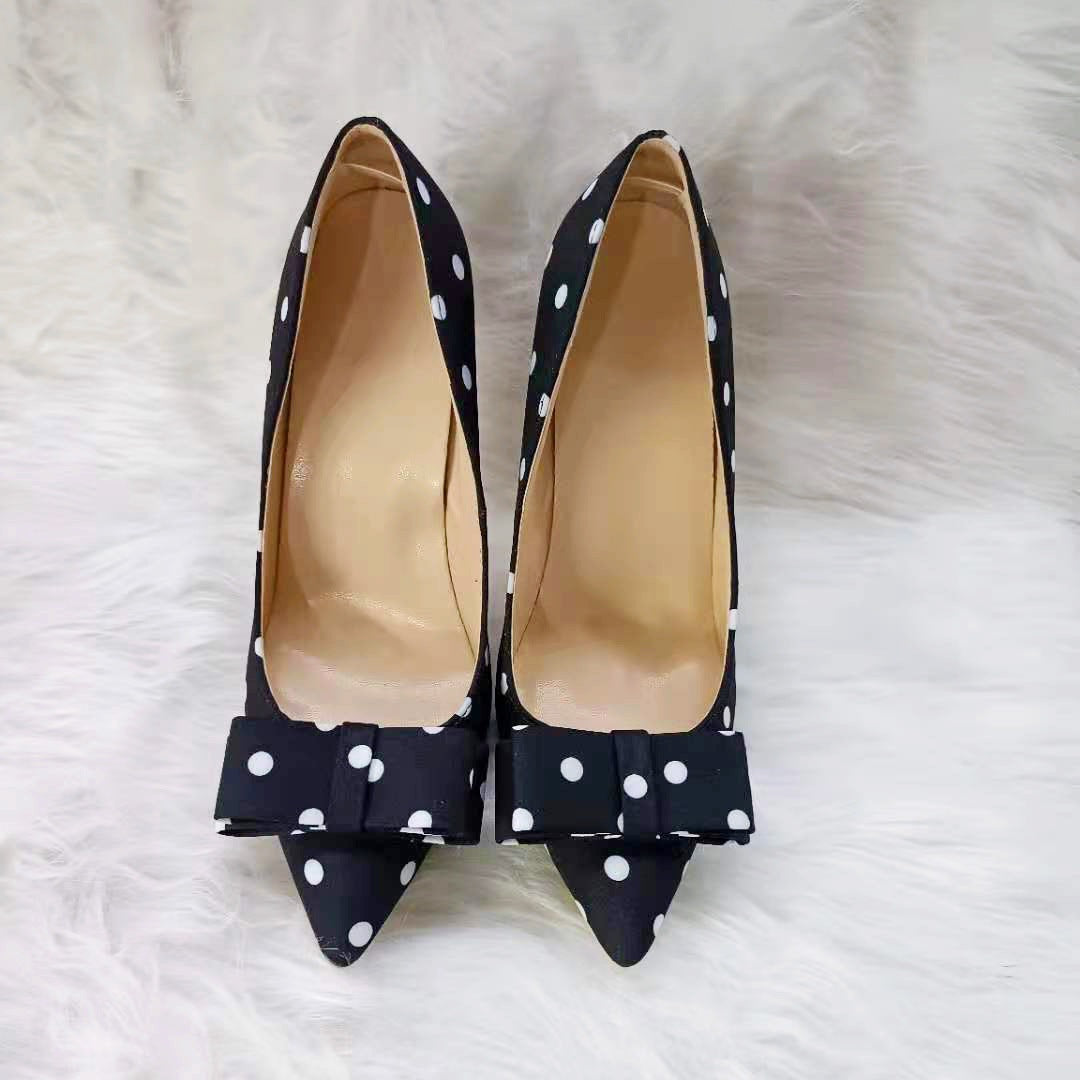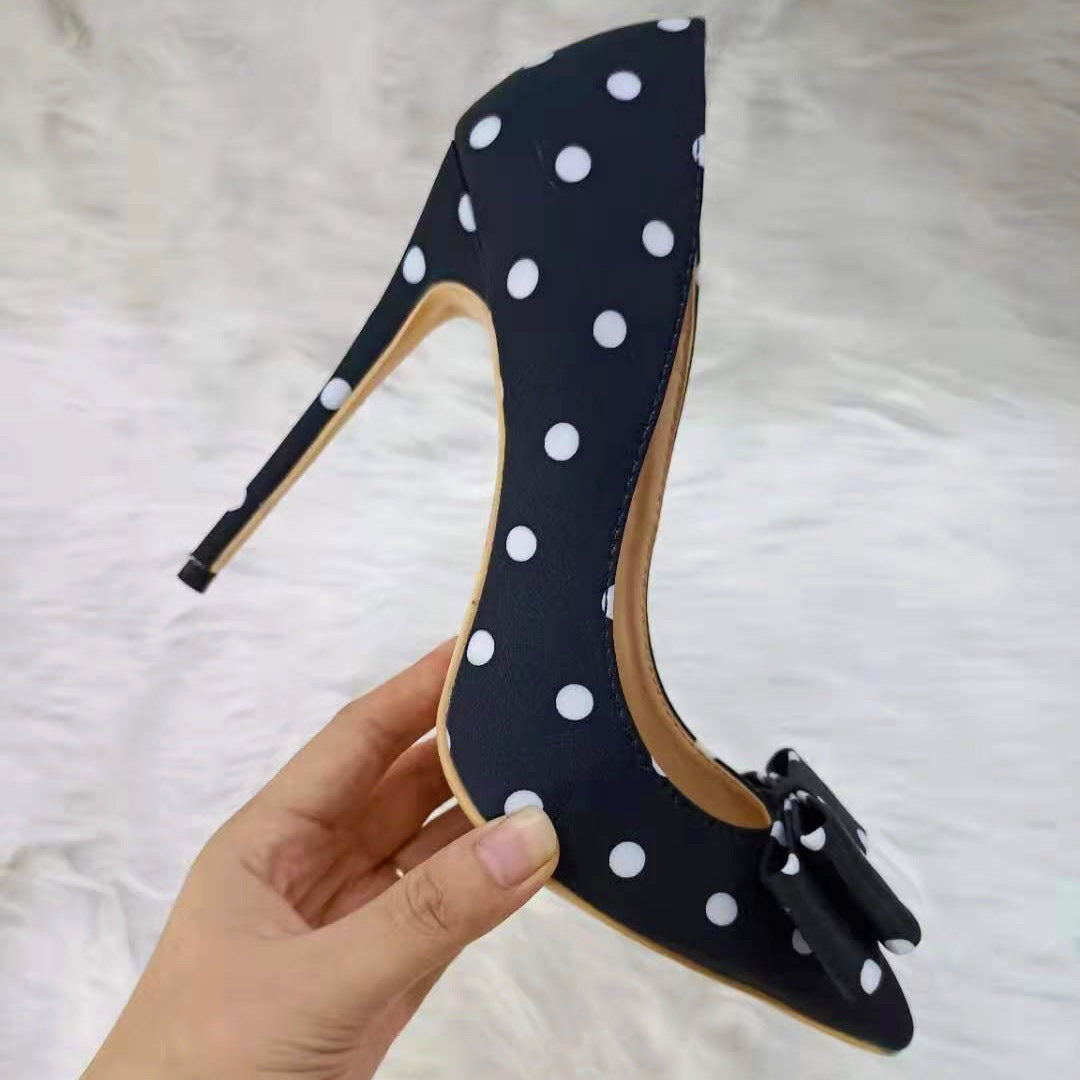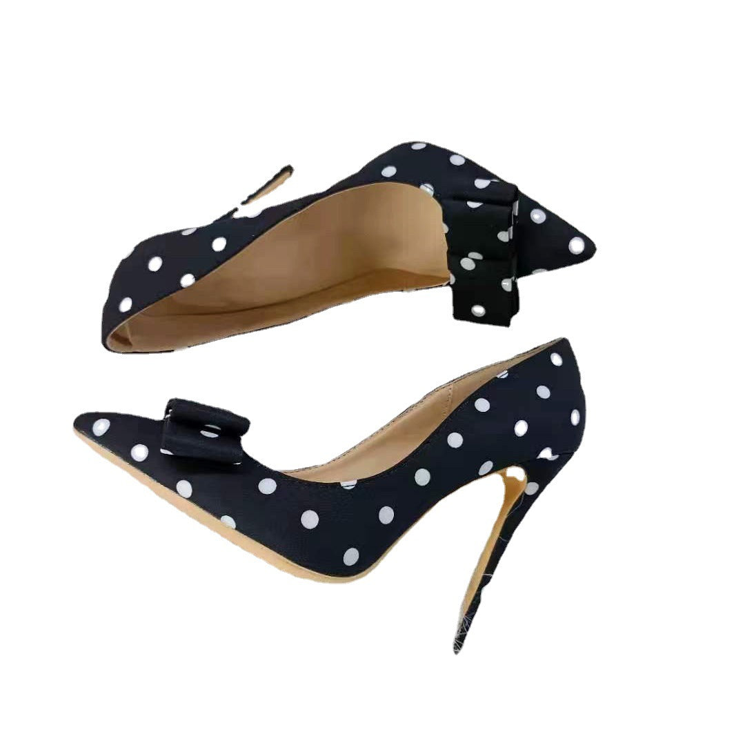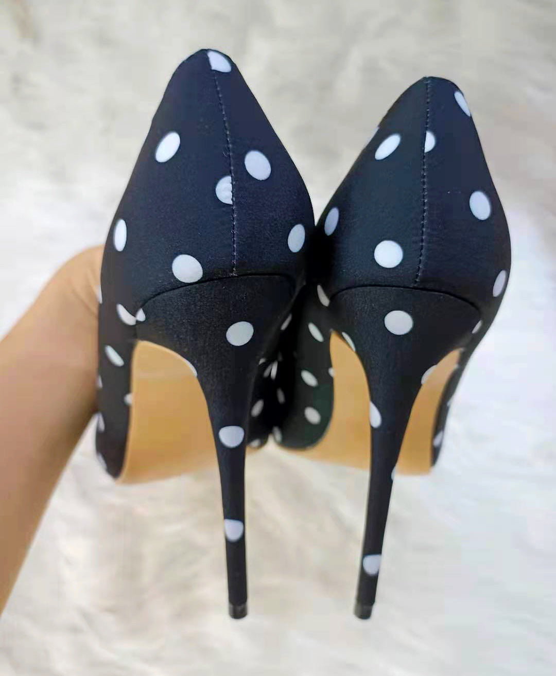 Black Satin Polka-dot High-heeled Shoes Female Stiletto Pointed Shallow Mouth Single Shoes