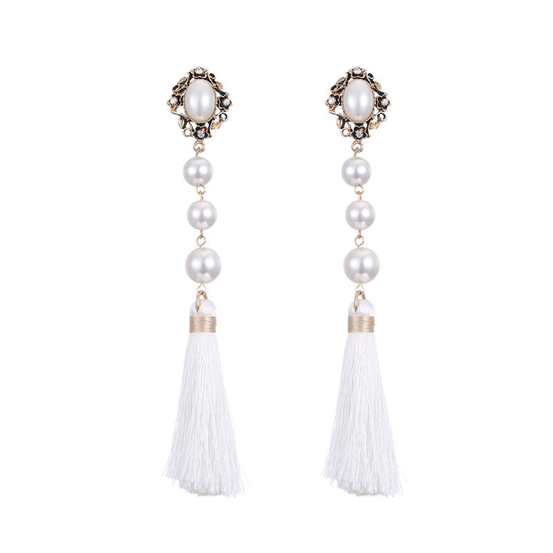 Fashion Pearls European And American Tassel Earrings
