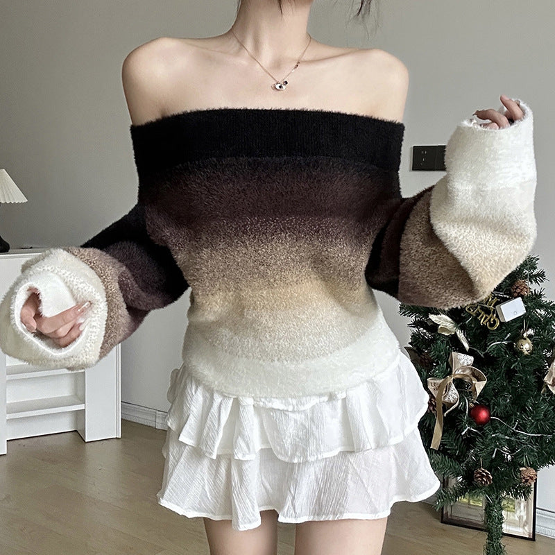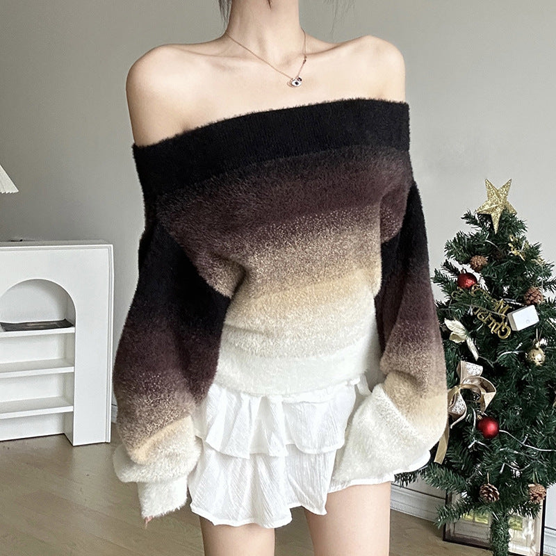 Product information: Pattern: gradient Color: Brown Size: S,M,L Version: Loose Popular elements: exposed navel Fabric name: Wool Wearing style: pullover... Read more