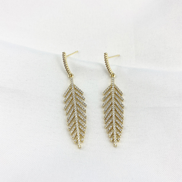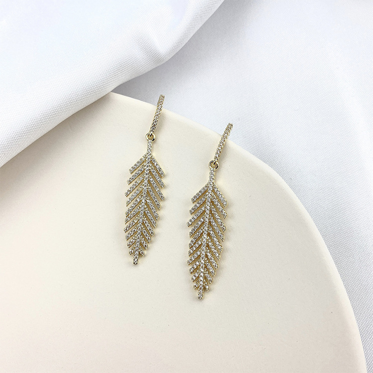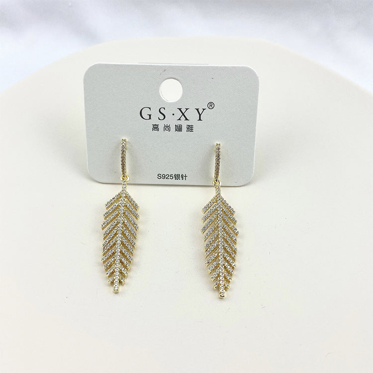 Leaf Earrings Women S925 Silver Needle Micro Inlaid Zircon Fashion Jewelry
