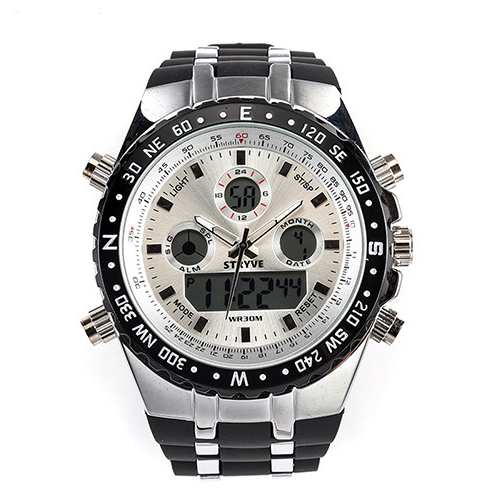 Display type: pointer + number Crown Type: Crown Shoulder Guard, Bridge Guard Buckle material: stainless steel Strap Material: Silicone +... Read more