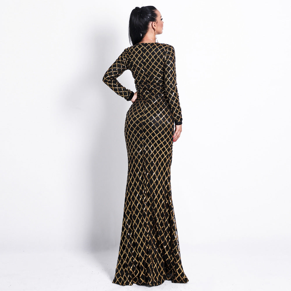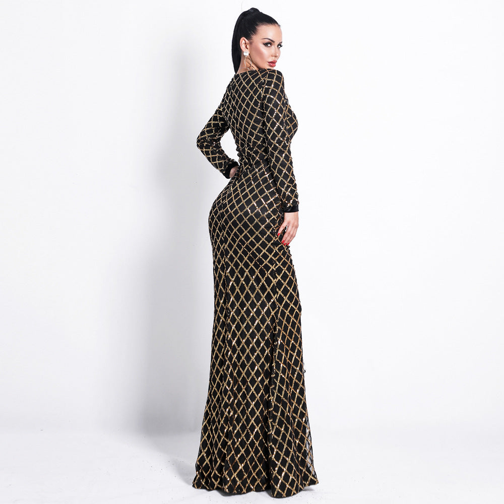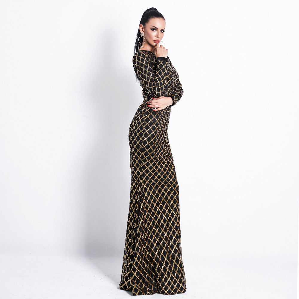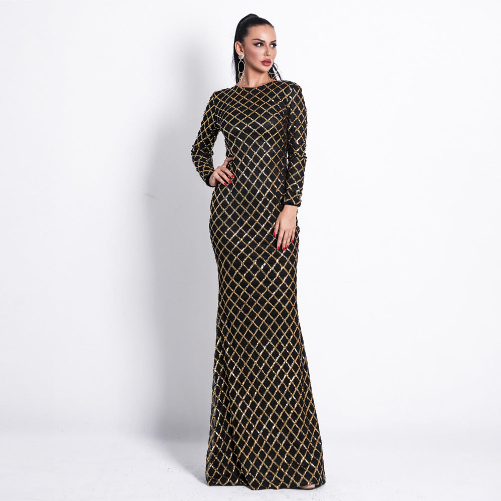 Round Neck Dress Elegant Evening Sequin Dress