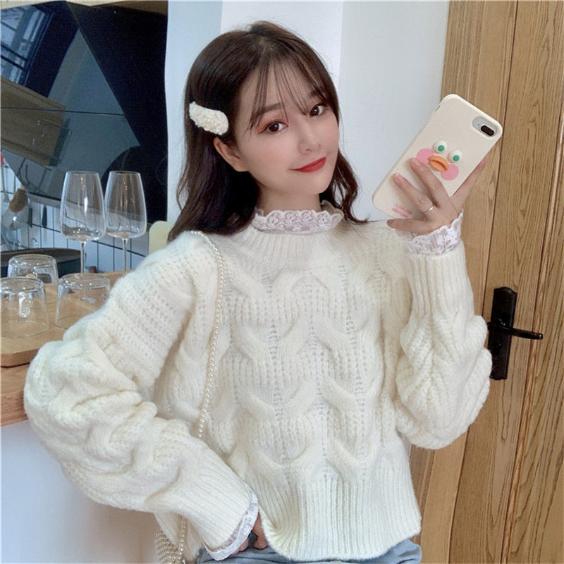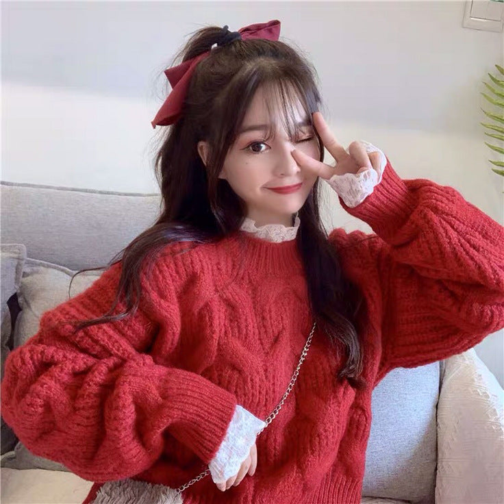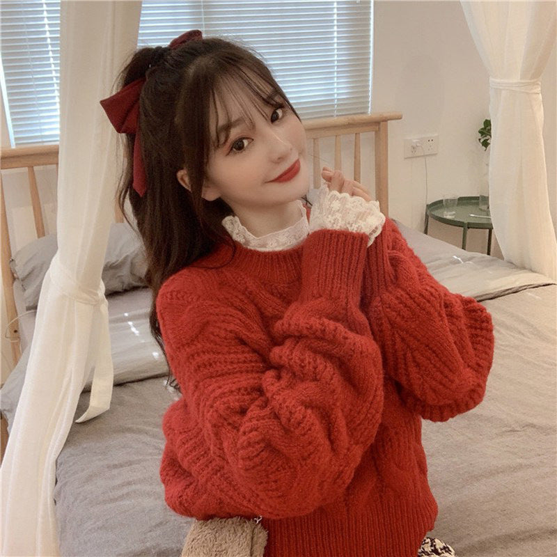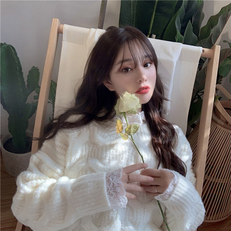 Women's Thickened Sweet Solid Color Large Hemp Flowers Knitwear Sweater
